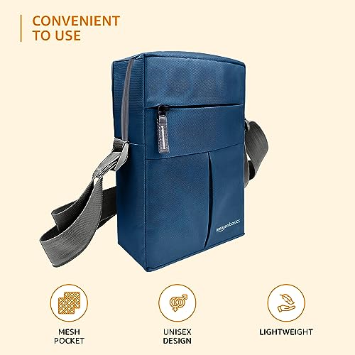 Amazon Basics Sling Bag/Crossbody Bag with Adjustable Strap for Daily and Travel Use, Durable, Water-Resistant, Travel-Friendly (Unisex, Blue)