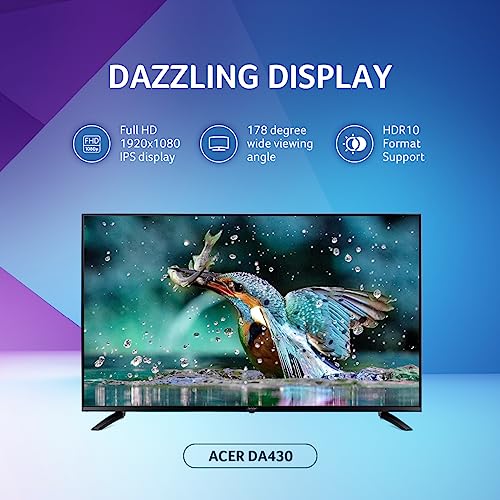 Acer DA430 43 Inch Smart Full HD IPS Panel LCD Monitor with LED Backlight I Streaming TV, Netflix, YouTube I Media Playback I Wireless Mirroring I…