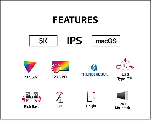 LG Ultrafine – 27Md5Kl, 27 Inch (68.58 Cm) 5K 5120 X 2880 Pixels IPS LCD Monitor – with Mac Os Compatibility – Thunderbolt 3 Port with 94W Power…