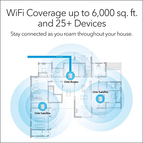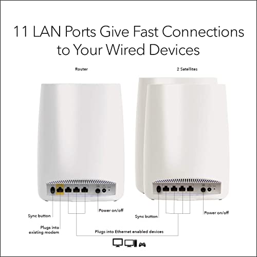 - Set of Three (3) for wide coverage area: Includes One (1) Orbi Wi-Fi Router and Two (2) Orbi Satellites that deliver unparalleled Wi-Fi coverage up to 7,500 square feet inside and around the outside of home