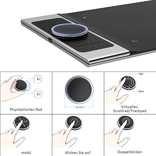 - ✅ [Dual Dial Efficiency]: The unique double dial design paired with trackpad functionality creates an unmatched drawing experience. You can easily program them to elevate your workflow. The roller wheel also comes equipped with an indicator light and adjustable brightness level, letting you stay immersed in your creation even in dim light.