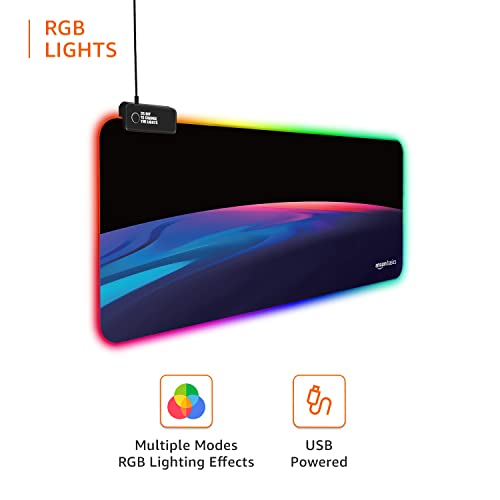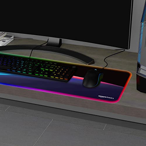 Amazon Basics RGB Light Gaming Mouse Pad Desk Mat for Computer Laptop | Stitched Embroidery Edges | Non-Slip Rubber Base | Extended Keyboard Mouse…