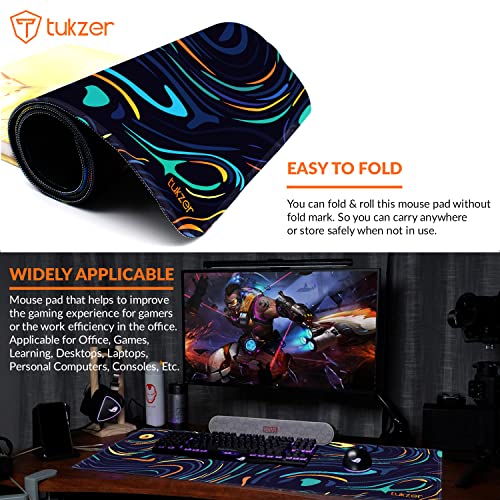 - HIGLY DURABLE DESIGN: Frayed edges and low-quality materials are problems many gamers are familiar with. The Tukzer gaming mouse pad made of advanced ultra-smooth microfiber cloth textile chosen only after countless hours of testing. Neatly stitched edges prevent wrapping and frying which Increasing durability. You can fold & roll this mouse pad without fold marks. So you can carry anywhere or store safely when Not in Use.