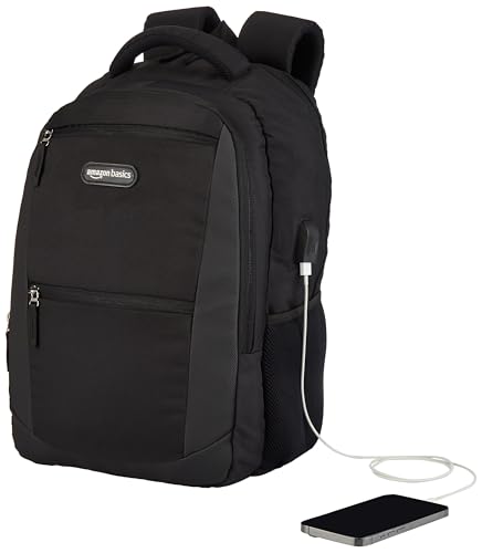 Amazon Basics Laptop Bag for 15.6 Inch Laptops | College/Travel Backpack with USB Charging Port and Anti-Theft Pocket | 23 L