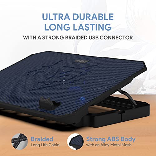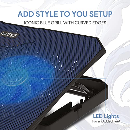 EvoFox Frost Laptop Cooling Pad with Silent Fans, 5 Adjustment Level, Silicon Pads, Iron mesh and Blue LED Lights, 2 USB Ports, for Laptops Upto…