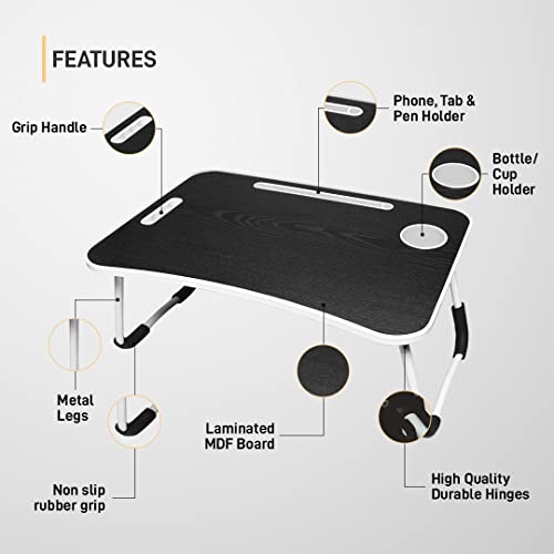 Specification: Gizga Essentials Stylish Multi-Purpose Portable Laptop Table, Foldable Wooden Desk for Bed Tray, Laptop Table, Study Table with Mug Holder,…