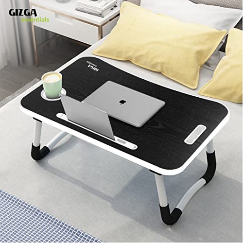 Gizga Essentials Stylish Multi-Purpose Portable Laptop Table, Foldable Wooden Desk for Bed Tray, Laptop Table, Study Table with Mug Holder,…