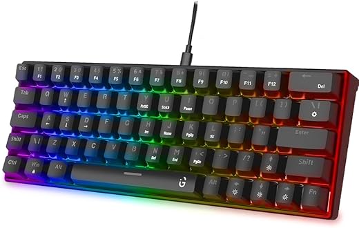 Specification: iGear Raptor 60% Wired RGB Gaming Keyboard, 63 Keys Compact Mechanical Keyboard, Software Supported, 64 RGB Backlit Keys, 23 Light Modes, 1.5m…