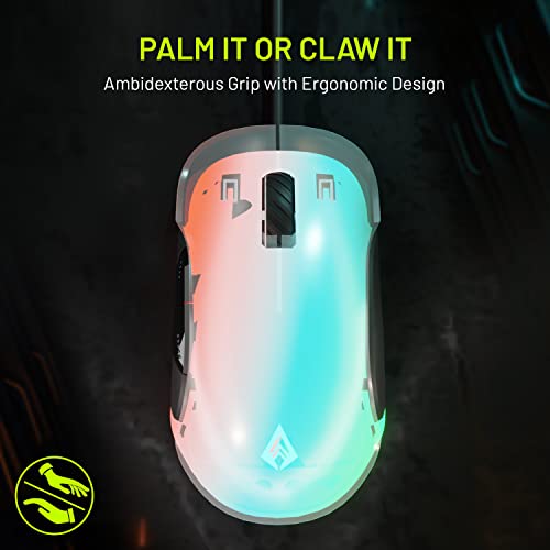 Archer Tech Lab Recurve 400 Transparent Wired Gaming Mouse, 12000 DPI with 1000Hz Polling Rate and 8 Buttons, 6 Mode Breathing RGB, Sunplus Sensor,…