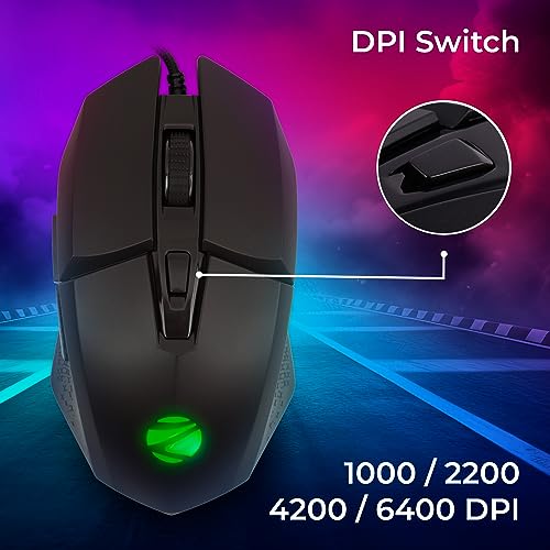 Specification: ZEBRONICS Newly launched Shark Premimum Gaming Mouse with High Resolution Sensor, 1.8m Braided Cable, RGB LED Lights, 1000/2200/4200/6400 DPI, 6…