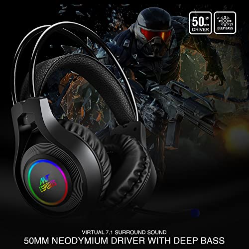 Ant Esports H570 7.1USB Surround Sound Gaming Headset with Noise Cancelling Mic & RGB Light, Compatible with PC/Laptop/ PS5/PS4 / Xbox – Black