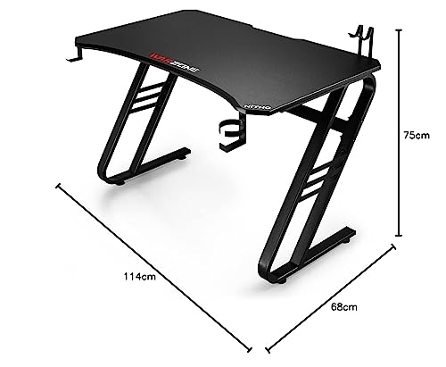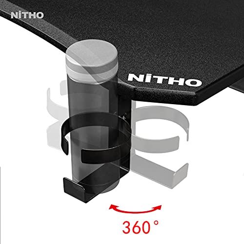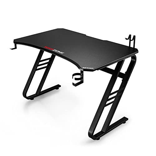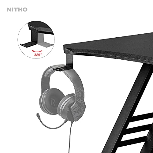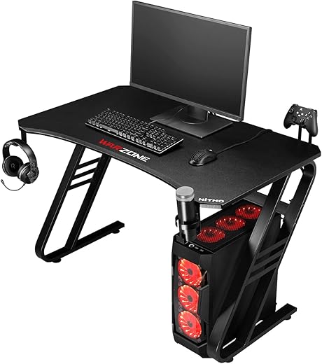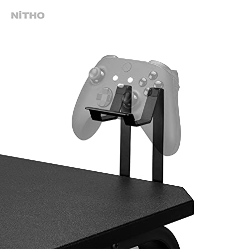 Nitho Warzone Gaming Desk, Table with Game Controller Headset Device Holder Cable Management Steel Frame, Black