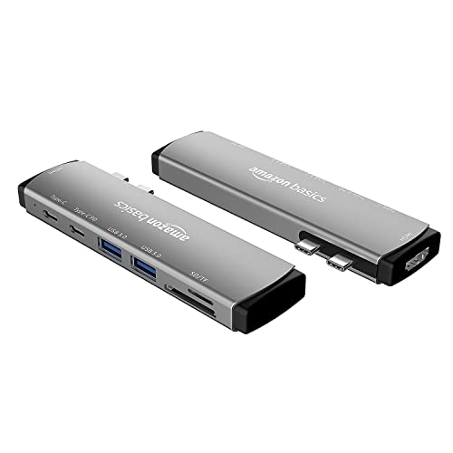 Amazon Basics 7-in-2 USB-C Hub Adapter with Thunderbolt 3 USB-C Port (100W Power Delivery), 4K HDMI Port, USB-C and USB A 3.0 Data Ports, SD and…