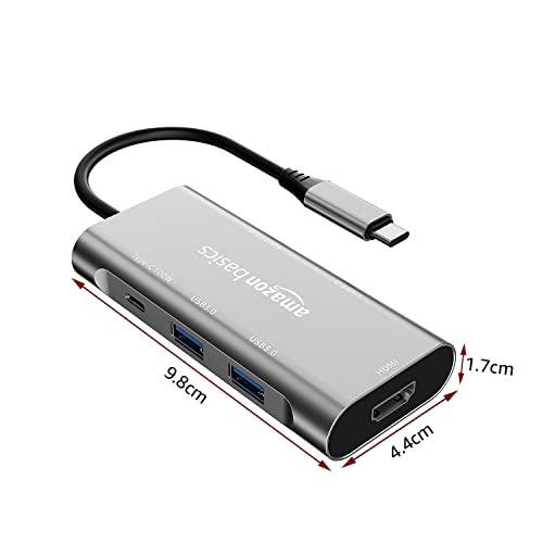 Amazon Basics USB-C Hub Dock 7-in-1 with 4K 30HZ HDCP Compliant, Aluminium Type C Adapter with 4K HDMI Port, USB 3.0 Port, USB-C Power Delivery,…
