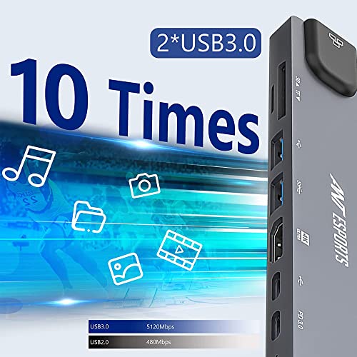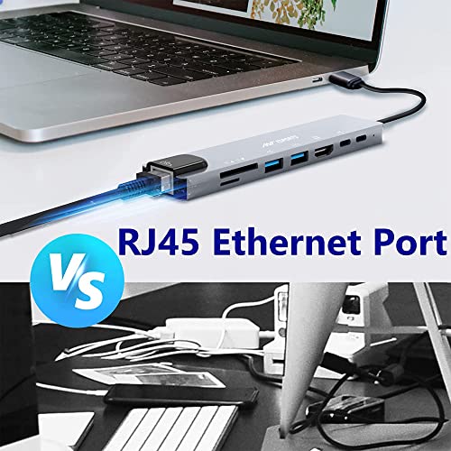- Multiport 8 in 1 HDMI Adapter – Expands the limited USB-C connectivity of your laptop to 1 4K HDMI port, 1 USB 3.0 ports, 1 USB 2.0 ports , 2 Type-C Female port, SD/TF card slot, and 1 RJ45 ethernet port. Will be great partner for your USB-C smart devices. Please Note: The SD and TF card can’t be read simultaneously.