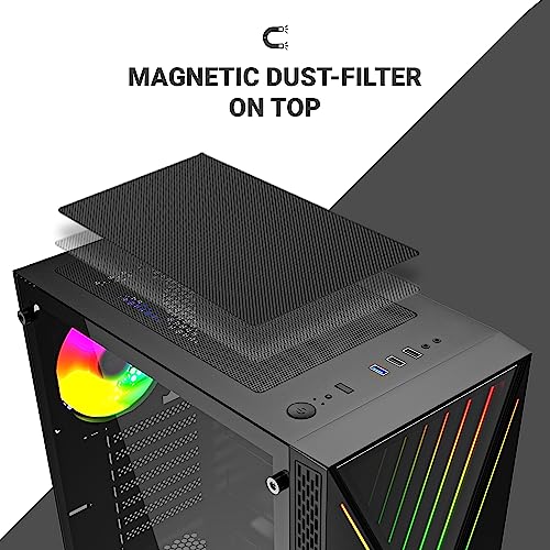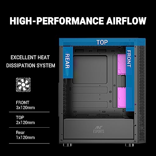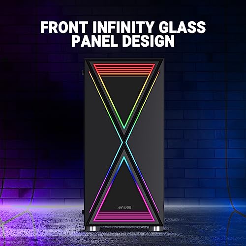 Ant Esports Infinity X Mid- Tower Computer Case/Gaming Cabinet – Black | Support ATX, M-ATX, ITX | Pre-Installed 1 x 120 mm ARGB Rear Fan