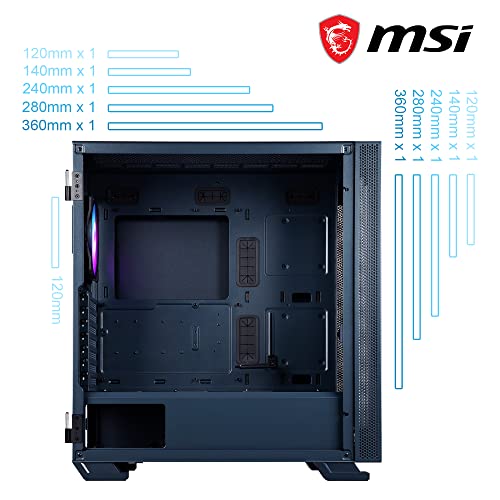MSI MAG VAMPIRIC 300R Pacific Blue mid-Tower Gaming PC case- ARGB Fan & Light Strip, USB 3.2 Gen2 Type-C, E-ATX, ATX, M-ATX, Mini-ITX, Tempered…
