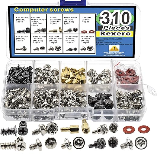 Specification: Rexero 310pcs PC Computer Screw Standoffs Assortment Kit for Hard Drive Computer Case Motherboard Fan Power Graphics