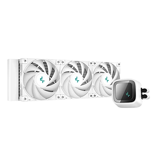 - The DeepCool LS720 WH premium liquid CPU cooler maximizes cooling performance and low-noise efficiency with a 360mm radiator, three FC120 A-RGB PWM fans, and an infinity mirror cap design.