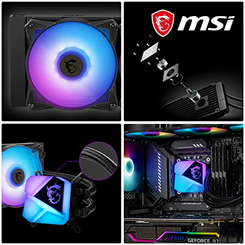 Specification: MSI MAG CORELIQUID C360 AIO CPU Liquid Cooler | 3 Phase Pump Motor | 360 Radiator with Radiator Pump Design | 3 x 120mm ARGB Fans | LGA 1700…