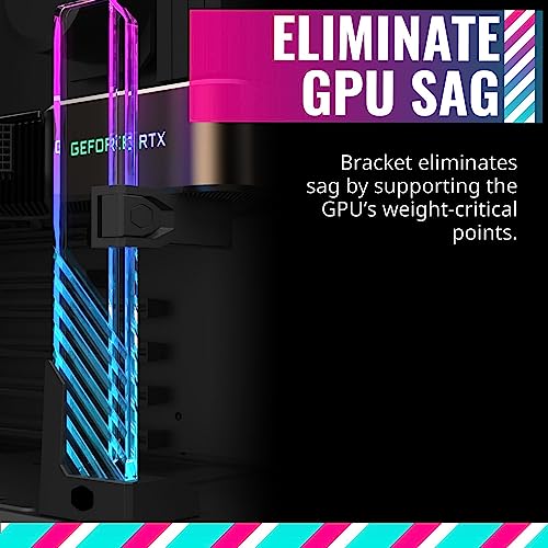 - Eliminate Graphics Card Sag: The ARGB GPU Support Bracket eliminates sag by supporting the GPU’s weight-critical points.;Edge-Lit ARGB Tempered Glass: CNC-machined tempered glass showcases ARGB lighting throughout the bracket. The lighting can also be turned off for an invisible aesthetic.