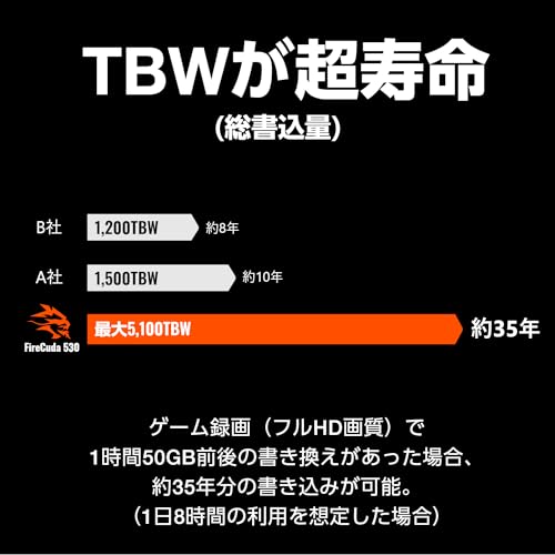 Specification: Seagate FireCuda 530 2TB Internal Solid State Drive – M.2 PCIe Gen4 4 NVMe 1.4, Transfer speeds up to 7300 MB/s, 3D TLC NAND, 2550 TBW, 1.8M MTBF…