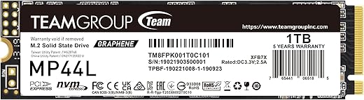Specification: TEAMGROUP MP44L 1TB SLC Cache NVMe 1.4 PCIe Gen 4×4 M.2 2280 Laptop&Desktop SSD (R/W Speed up to 5,000/4,500MB/s) TM8FPK001T0C101