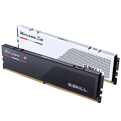 - G.Skill Ripjaws S5 (Intel XMP) 64GB (2 x 32GB) DDR5 5600 CL36-36-36-89 1.25V Dual Channel Desktop Memory / RAM – F5-5600J3636D32GX2-RS5K (Black)
