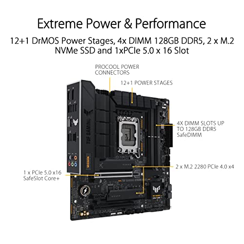 Specification: ASUS TUF Gaming B760M-PLUS mATX Motherboard (Intel LGA1700) DDR5, PCIe 5.0 Slot, Two PCIe 4.0 M.2 Slots, 12+1 DrMOS, Realtek 2.5Gb Ethernet,…