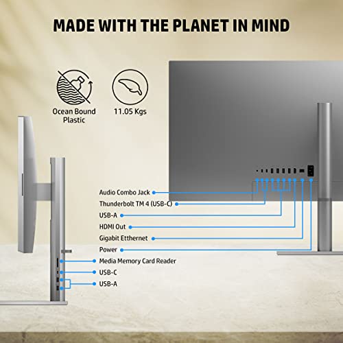 - Dsiplay: 86.36 cm (34″) diagonal, WUHD (5120 x 2160), IPS, three-sided microedge, anti-reection, 500 nits, 98% DCI-P3