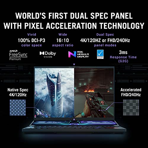 Specification: ASUS ROG Zephyrus Duo 16 Dual Screen Laptop, 16″ (40.64 cm) UHD+/FHD+ 120Hz/240Hz/3ms, AMD Ryzen 9 6900HX, 16GB RTX 3080 Ti, Gaming Laptop…