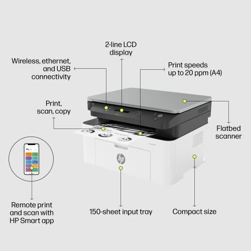 - “COMPACT DESIGN : Surprisingly small size, exceptional print quality; AFPORDABLE PRINTING: Rely on a high-performance laser printer at an affordable price RELIABLE CONNECTIVITY: 1 Wi-Fi 802.11b/g/n; 2 Hi-Speed USB 2.0 (device); Ethernet 10/100 Base-TX RELIABLE HP QUALITY : Produce sharp text, bold blacks and crisp graphics”