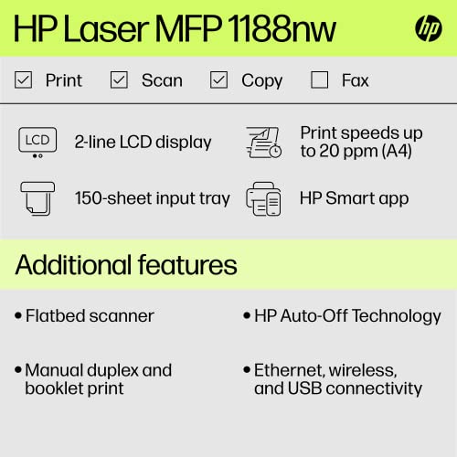 HP Laserjet 1188nw WiFi Printer, Print Copy Scan, Compact Design, Reliable and Fast Printing, Network Support