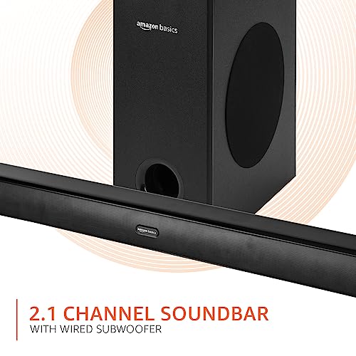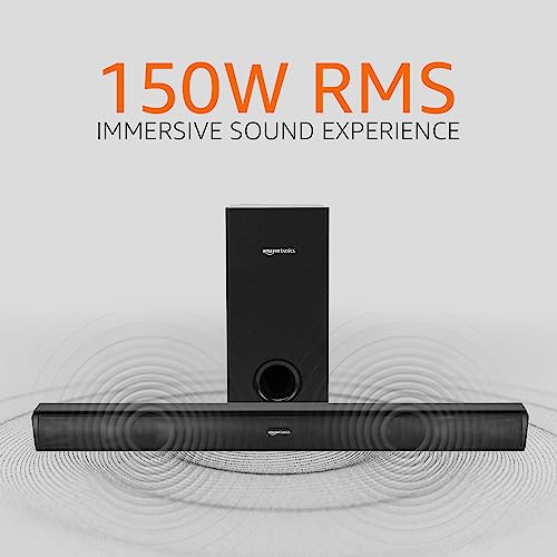 - Power: Experience the power of 150W RMS with this Amazon Basics soundbar. This high-quality soundbar with wired subwoofer gives crystal-clear surround sound, bringing you an immersive sound experience.