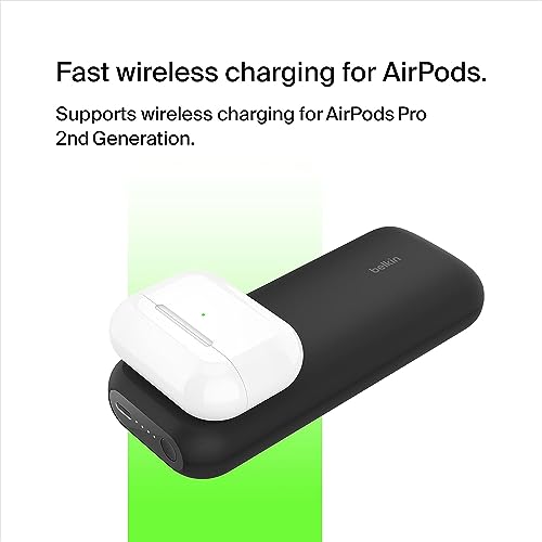 Belkin 10000 mAh Power Bank with 7.5W Fast Wireless Apple Watch | Ultra 1 & 2 | AirPods Pro (2nd Generation) Charger, 20W USB-C PD Port – Black
