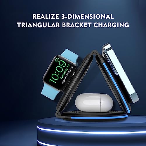 - 3 in 1 QI Magnetic Foldable Super Fast Charger : Irusu Trifold 3 in 1 Magnetic Foldable Desk Phone Charger, the ultimate wireless charging solution for your Phone series! With its sleek design and powerful 15W fast charging capability, this wireless charger is designed to make your charging experience convenient and efficient.