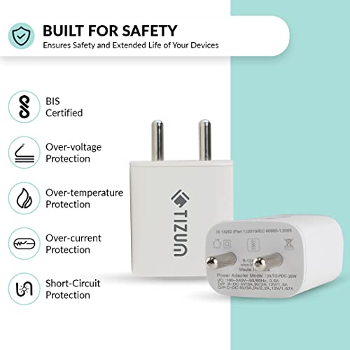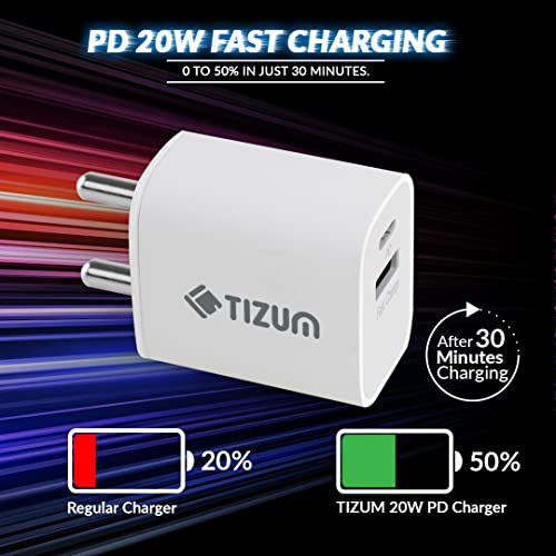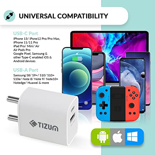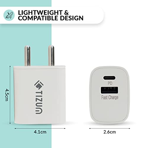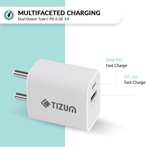 Specification: Tizum USB 20 W Dual Port (Type C + USB A) PD Charger/Adapter with Fast Charging for iPad, iPhone 8 & Above, Smartwatches, All Android & Apple…
