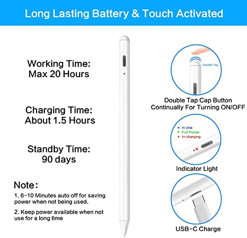 - [Super Precise and Easy To use] The ipad pencil is equipped with a 1.5mm upgraded POM tip which is more precise and smooth, No lagging, No skips, No scratches. Compared with the ordinary stylus pens nib, it has higher durability. No need to install Bluetooth or Apps. You can use it to browse the Web, jot down notes, paint a watercolor, sketch, or mark up a document.