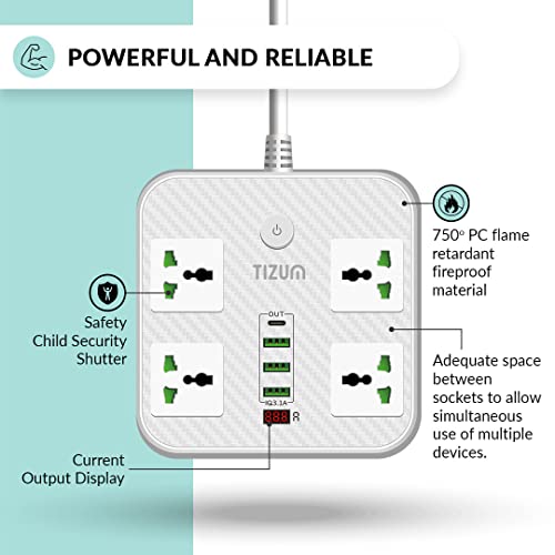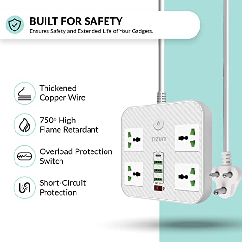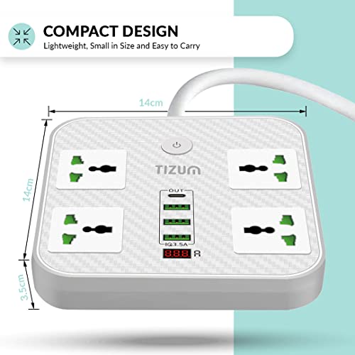 Specification: Tizum Fast Charging Extension Board/Cord with USB Ports for Office/Home | Spike Guard/Power Strip | 4 Sockets, 2 USB, 1 PD, 1 QC 3.1A | 2m Cable,…