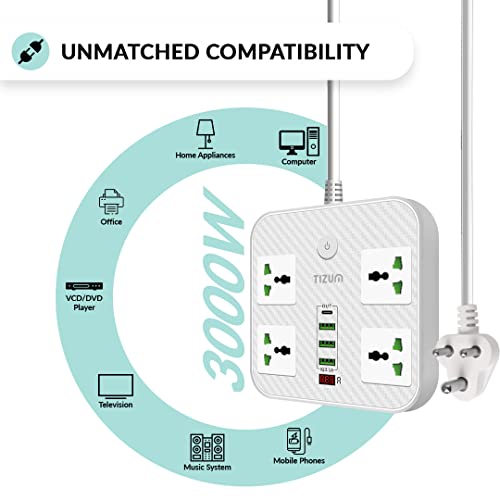 8 reviews for Tizum Fast Charging Extension Board/Cord with USB Ports for Office/Home | Spike Guard/Power Strip | 4 Sockets, 2 USB, 1 PD, 1 QC 3.1A | 2m Cable,…