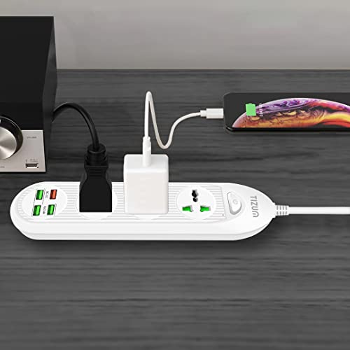- Multipurpose: Features 3 Sockets, 3 USB & 1 QC 3A Ports with a 2m cable and an independent switch. The design ensures maximum space between ports allowing simultaneous use of multiple devices.