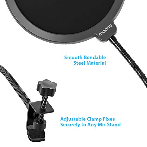 Specification: Maono AU-B00 Pop Filter for Studio Condenser Microphone with Wind Screen and Metal Gooseneck Holder (Black)