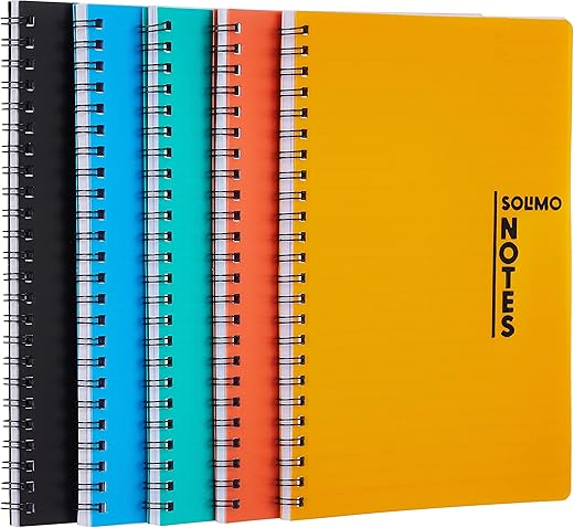 - Solimo presents this set of five lightweight notebooks. These versatile books are suitable for use in the classroom or office, meeting a range of daily needs.