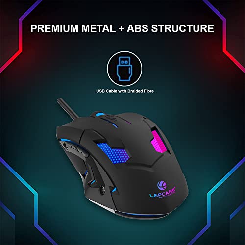 Lapcare Champ LGM-100 Gaming Mouse, 6 Buttons, 4 Adjustable DPI Levels Upto 3600 DPI, 5 Circular & Breathing LED Light, Wired Mouse (Black)