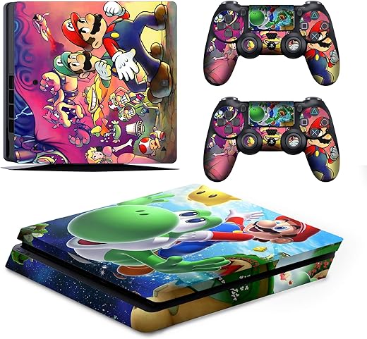 Fox Micro® PS4 Slim Console Mario Skin Decal Vinal Sticker & 2 Controller Decal Vinyl Protective Covers Stickers for PlayStation 4 Slim