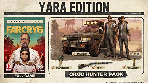 - The yara Edition of far Cry 6 includes: base game; the croc Hunter pack – croc Hunter outfit, the 45/70 Rifle, the crocodile tooth weapon charm and the 45/70 Cartridge vehicle accessory