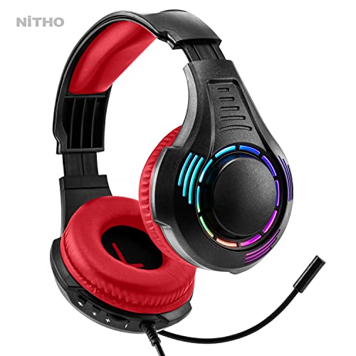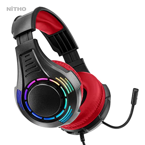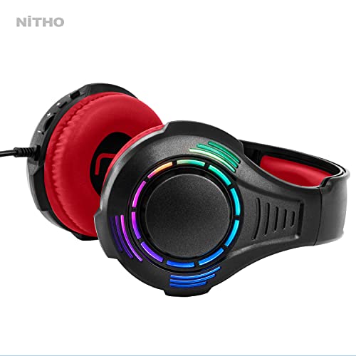 NiTHO SPECTRA STEREO GAMING HEADSET RED with Noise Canceling Mic & RGB LED Light, Compatible with PC/PS4/PS5/Xbox One/XBOX series X S/Switch/Phones…