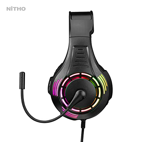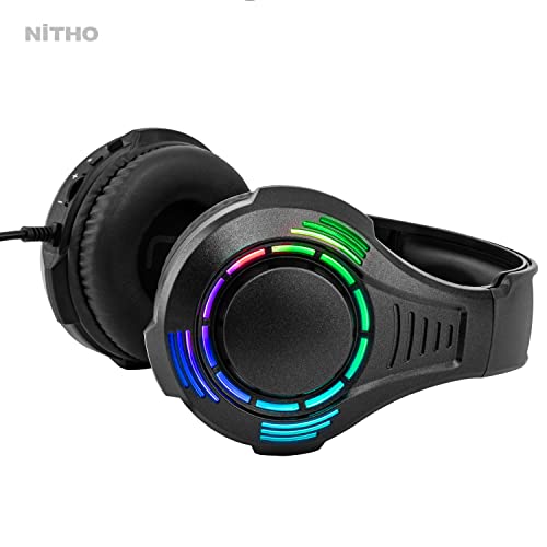 NiTHO SPECTRA STEREO GAMING Wired On Ear Headphones with Noise Canceling Mic & RGB LED Light, Compatible with PC/PS4/PS5/Xbox One/XBOX series X…